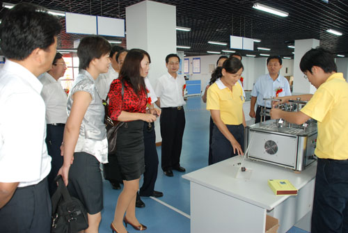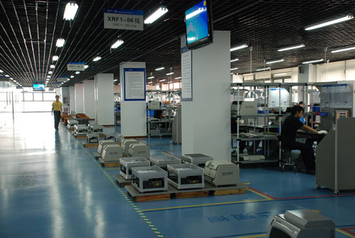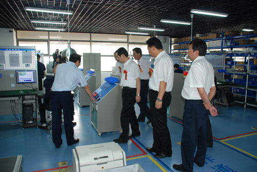 Later, Dr. Liu led the visitors to tour around SAMIIP and introduced our workshop, Application R&D Center, incoming material inspection system, highly efficient management model and visual working management system, of which all visiting leaders spoke highly and they praised Skyray Instrument for our corporation’s standardized and visual operation and management.
