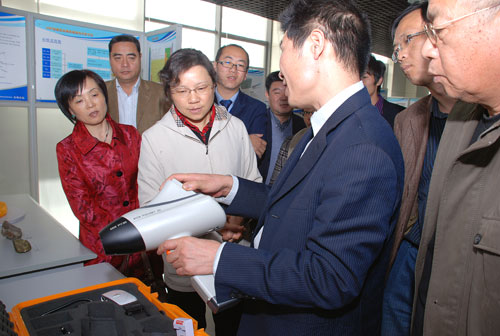 Secretary Mr. Yang Jide showing how to operate the Handheld XRF Analyzer