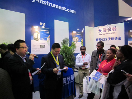 The skyray Instrument exhibition booth number is T2,which is the first booth at the right of the gate. The fan-shaped blue booth has many ways to display including teletext board, multiplayer pictures, instrument display and so on. “Be the worldwide top provider of analysis solutions.” So read the huge characters on the display board. On the first day of the exhibition, more than 1000 guests visited Skyray booth. Guests are respectively come from some internal colleges and universities, research utilities, some enterprises and international visitors from Turkey, Denmark, Holland, India, Saudi Arabia, Malaysia, Pakistan and so on.