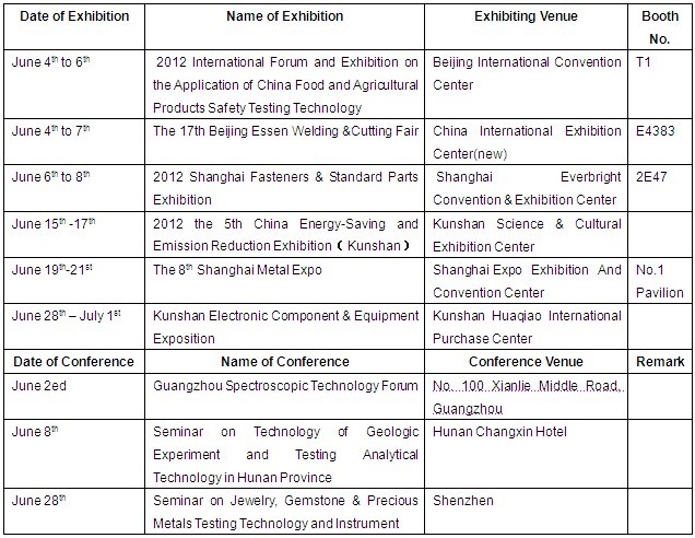 Schedule of Exhibition and Conference for June 2012